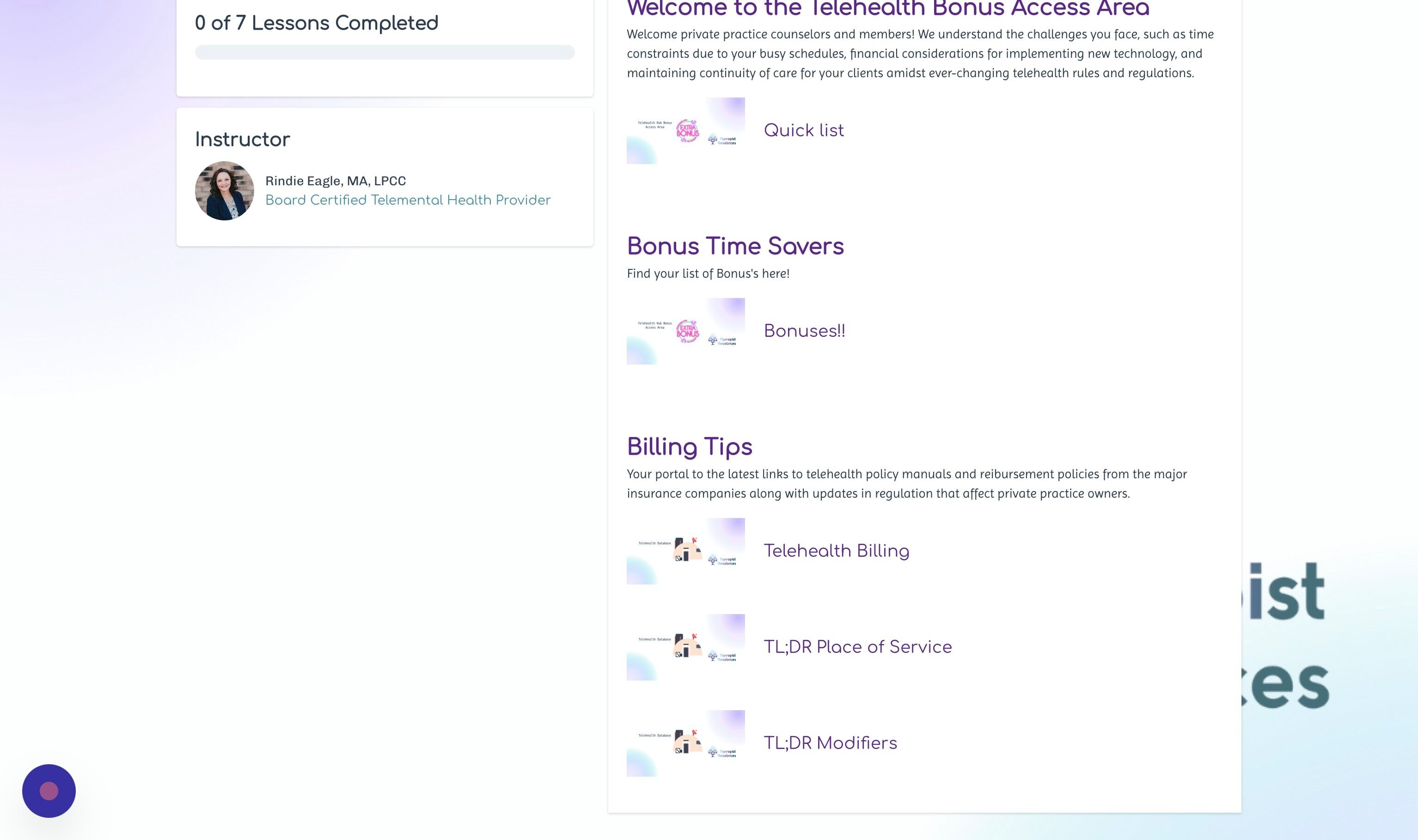 The Telehealth Hub Bonus Access Area is your FREE portal to Telehealth resources for the Private Practice Therapist.